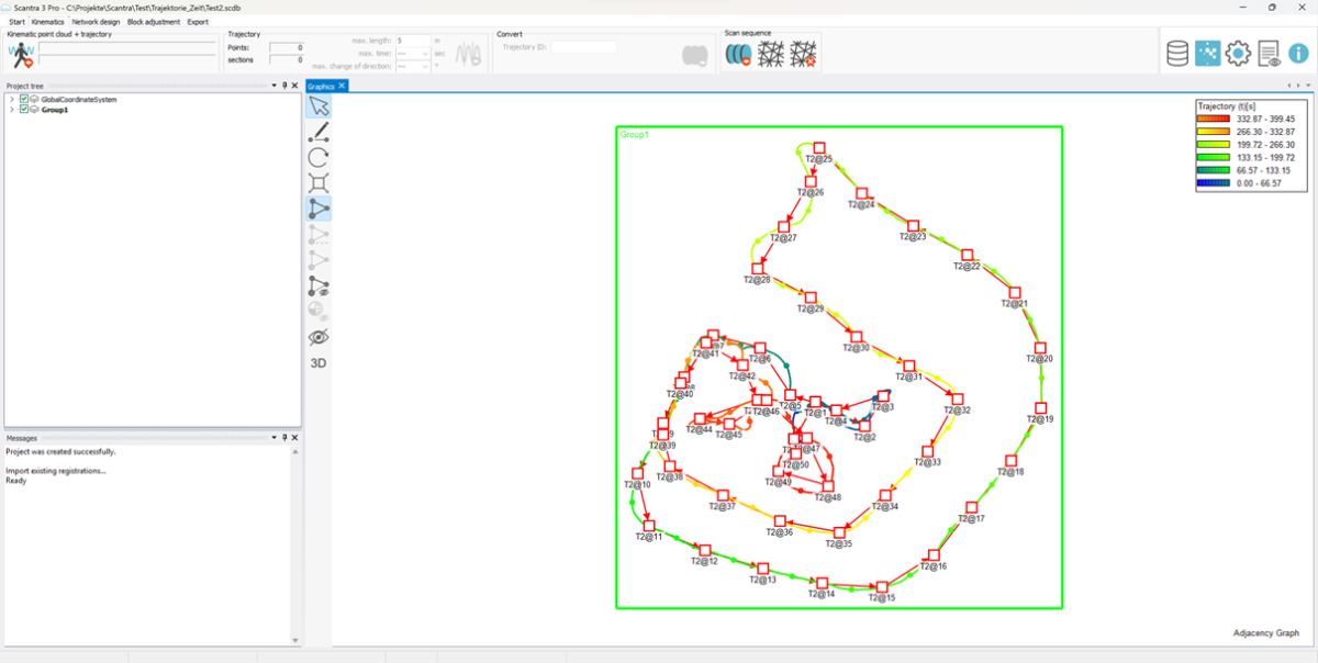 Als extra module breidt Scantra KINEMATIC de functionaliteit van SCANTRA PRO uit en maakt het de import van kinematische scans en trajecten (LAZ, LAS en andere formaten) mogelijk. Per project kunt u maximaal 10.000 semi-statische scans (afgeleid van kinematische scans) laden en bewerken.